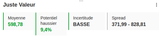 Selon InvestingPro, service que je vous recommande chaudement, la valeur intrinsèque tourne autour de 599 dollars, soit un potentiel d’environ 9,4 % au-dessus du cours actuel. Ce n’est pas une énorme décote, mais cela reste appréciable pour une entreprise aussi solide.