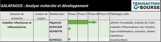 Au sein de la biotech Galapagos, on trouve un pipeline constitué de produits diversifiés. La stratégie vise l’inhibition des agents infectieux ou inflammatoires, plutôt qu’une intervention sur les symptômes.