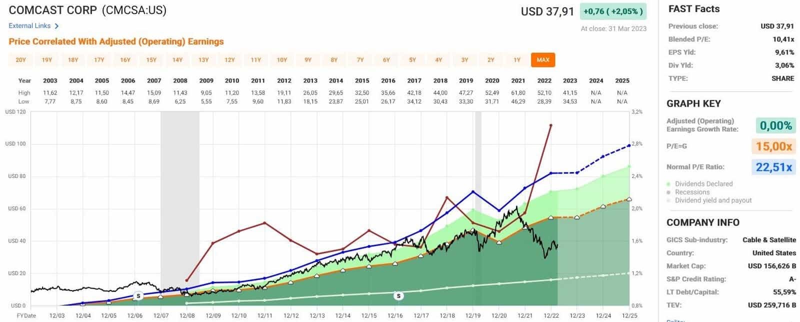 Comcast ($CMCSA) est le premier "opérateur internet" américain. L'entreprise possède en outre plusieurs chaînes de télévision et un département cinéma avec NBCUniversal.