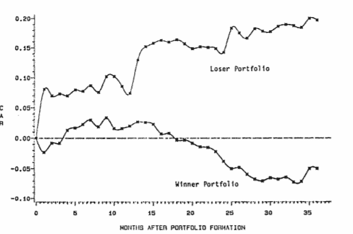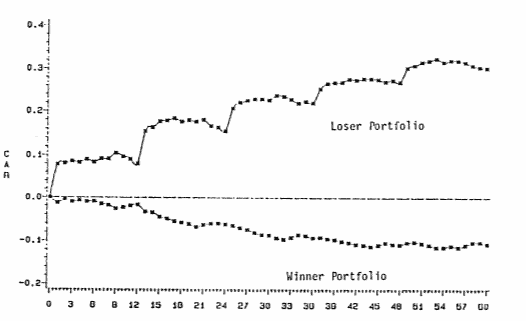 Nous pouvons voir que les portefeuilles n’ayant que des perdants historiques ont surperformé les portefeuilles ne détenant que des « gagnants ».