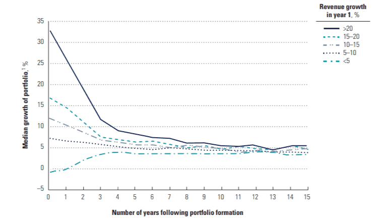 Only 26 percent of high-growth companies maintained better than 15 percent real growth 10 years later. High growth is very difficult to sustain—much more difficult than high ROIC.