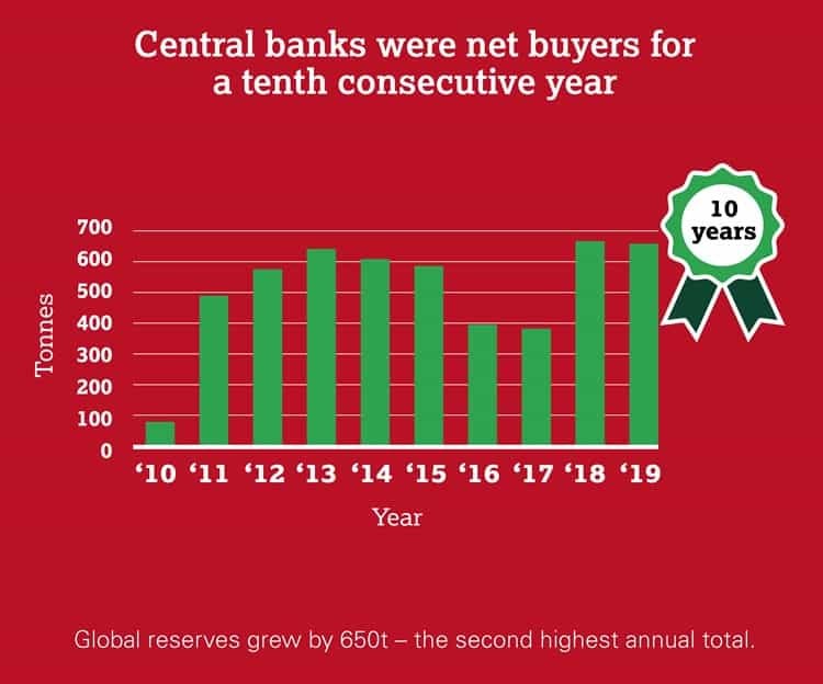 Le prix de l'or augmente aussi parce que les banques centrales en achètent énormément. Ces achats massifs lui fournissent un support très important.