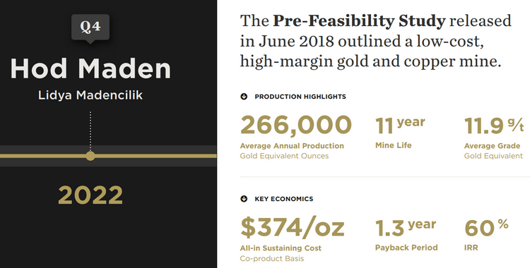 Pour l'année 2019, l'entreprise prévoit un cash-flow de 66 millions de dollars, et projette de le doubler d'ici 2023, avec 140 millions. Ces importantes rentrées d'argent doivent provenir en partie de sa participation dans la future gigantesque mine d'or Hot Maden, en Turquie.