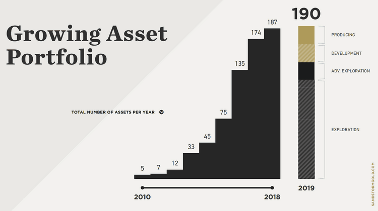 Sandstorm Gold est une société de streaming/royalties d'or qui a été créée en 2008 par 2 anciens membres de Wheaton Precious Metals. Après onze années d'existence, la compagnie possède un portfolio impressionnant de plus de 200 sources de royalties. Si vous ne connaissez pas le streaming d'or, voyez mon article complet sur le sujet.